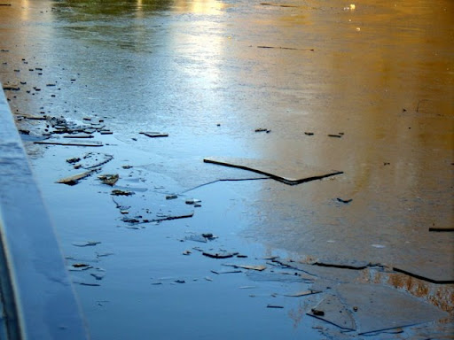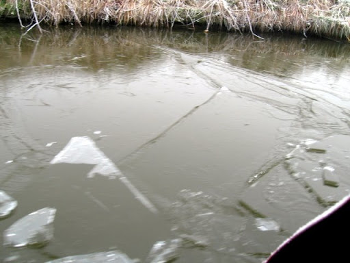 The first 2 pounds were well and truly frozen again so it was a case of imitating an ice breaker. Even though another boat had been through about 1½ hours ahead of us the water had started to freeze over again. At times we were pushing sheets of ice as big as the boat ahead of us and other times we were unable to steer as the ice just pushed us sideways unless we hit it head on and smashed it.