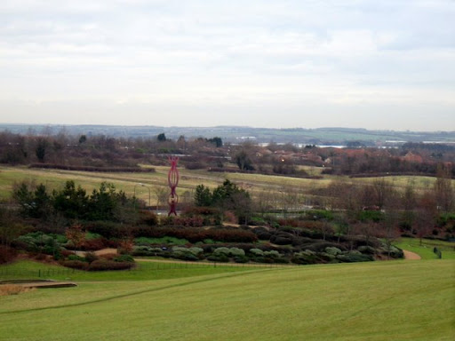 Today we walked into the Milton Keynes shopping centre across Campbell Park via one of the many cycle/walkways around this place. The park itself is huge,well kept and tidy. You can see by the way the town is laid out that it has been designed and built in the modern automobile era. Flyovers crossing dual carriageways abound and there was a conspicuous absence of traffic signals. The streets are laid out in grid formation and the whole place looked very American. As for the buildings they are nothing startling but they are a mixture of retail, office and inner city apartments and the word "cubism" comes to mind. The only exceptions are the theatre and the sports complex with its indoor ski slope.