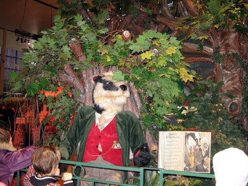 Once inside the shopping centre, which is also in grid fashion, it's vastness with shops as far as the eye could see is mind boggling, a shopaholic's delight. Outside John Lewis's store is a large open entertainment area which had a magnificent Xmas display with the theme from Wind in the Willows. Ratty, Mole and Toad where there with all their friends in various diorama's of stories with a Xmas theme. One pleasing feature was story boards in braille placed around the diorama's so that the visually impaired could enjoy it as well.