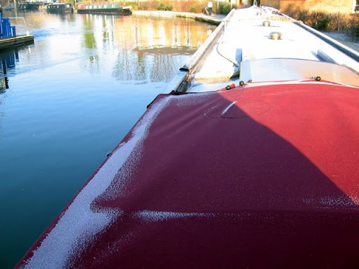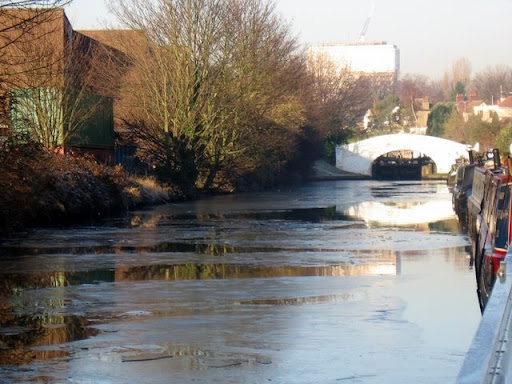 At the Wyvern Shipping company we tried to turn but the winding hole was well and truly iced up. Eventually a guy from the boat yard came out and took the bow rope and helped us round. While halfway through the winding manoeuvre he told us to tie up so we could take on diesel. The yard has a veeeery long hose to be able to reach all their hire boats regardless of where they are moored, 112 litre's later and we headed back to the Tesco moorings for the night.