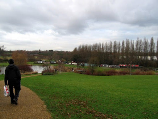 Today we walked into the Milton Keynes shopping centre across Campbell Park via one of the many cycle/walkways around this place. The park itself is huge,well kept and tidy. You can see by the way the town is laid out that it has been designed and built in the modern automobile era. Flyovers crossing dual carriageways abound and there was a conspicuous absence of traffic signals. The streets are laid out in grid formation and the whole place looked very American. As for the buildings they are nothing startling but they are a mixture of retail, office and inner city apartments and the word "cubism" comes to mind. The only exceptions are the theatre and the sports complex with its indoor ski slope.