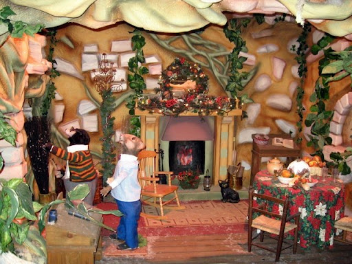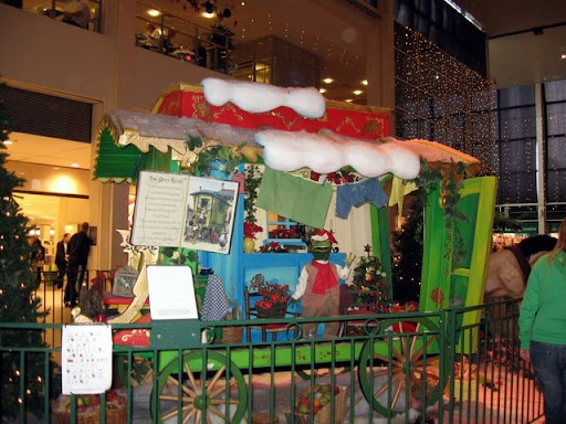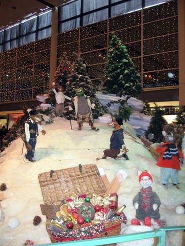 Once inside the shopping centre, which is also in grid fashion, it's vastness with shops as far as the eye could see is mind boggling, a shopaholic's delight. Outside John Lewis's store is a large open entertainment area which had a magnificent Xmas display with the theme from Wind in the Willows. Ratty, Mole and Toad where there with all their friends in various diorama's of stories with a Xmas theme. One pleasing feature was story boards in braille placed around the diorama's so that the visually impaired could enjoy it as well.